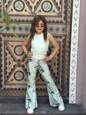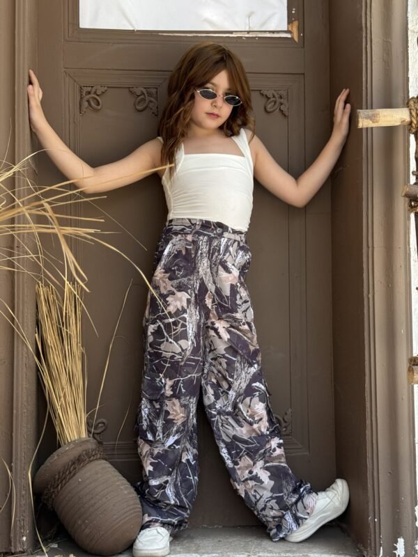 طقم توب كتف واحد كرانيش و بنطلون واسع مشجر