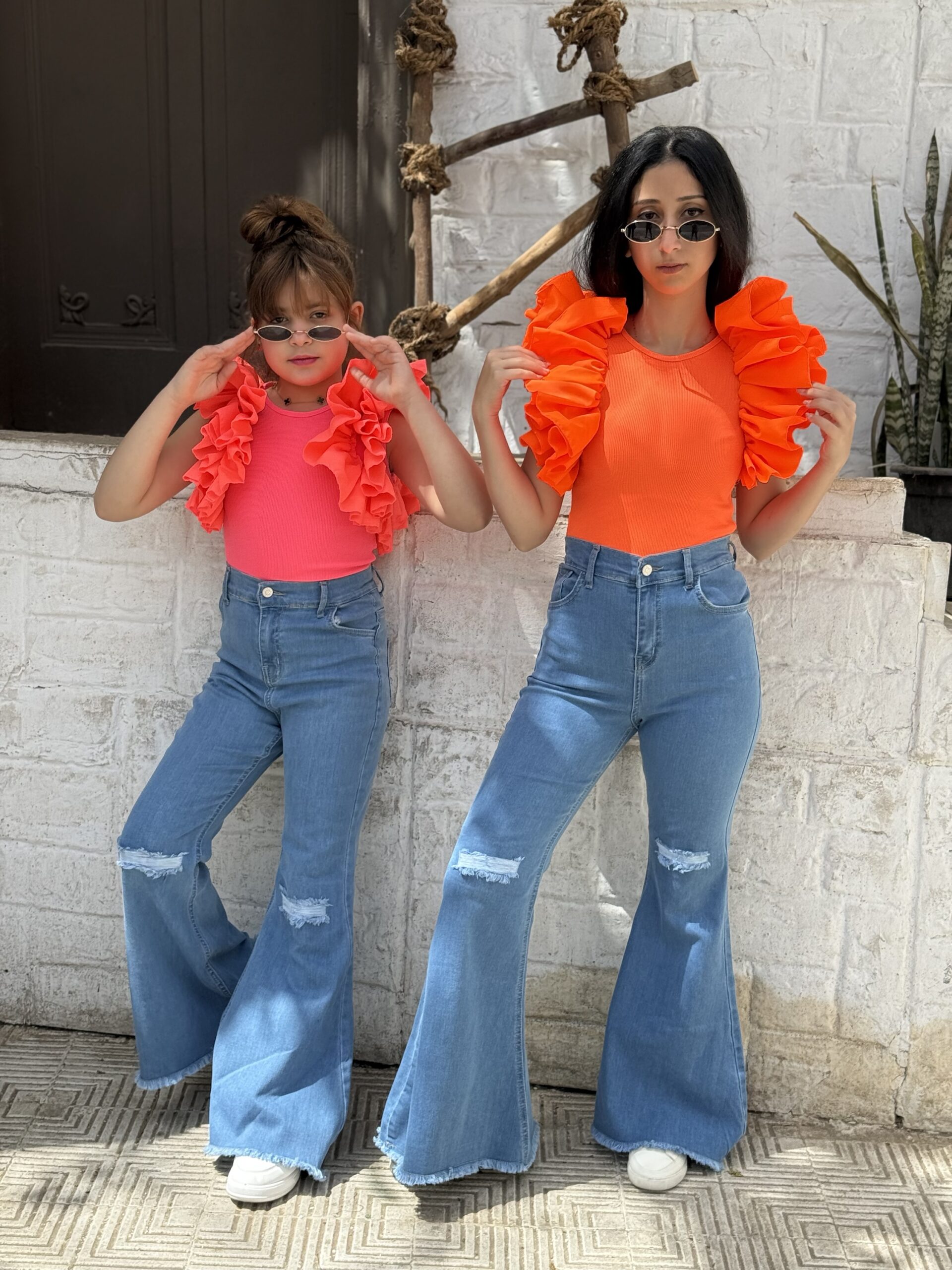 بنطلون جينز كارجو جيوب جانبيه بقصه
