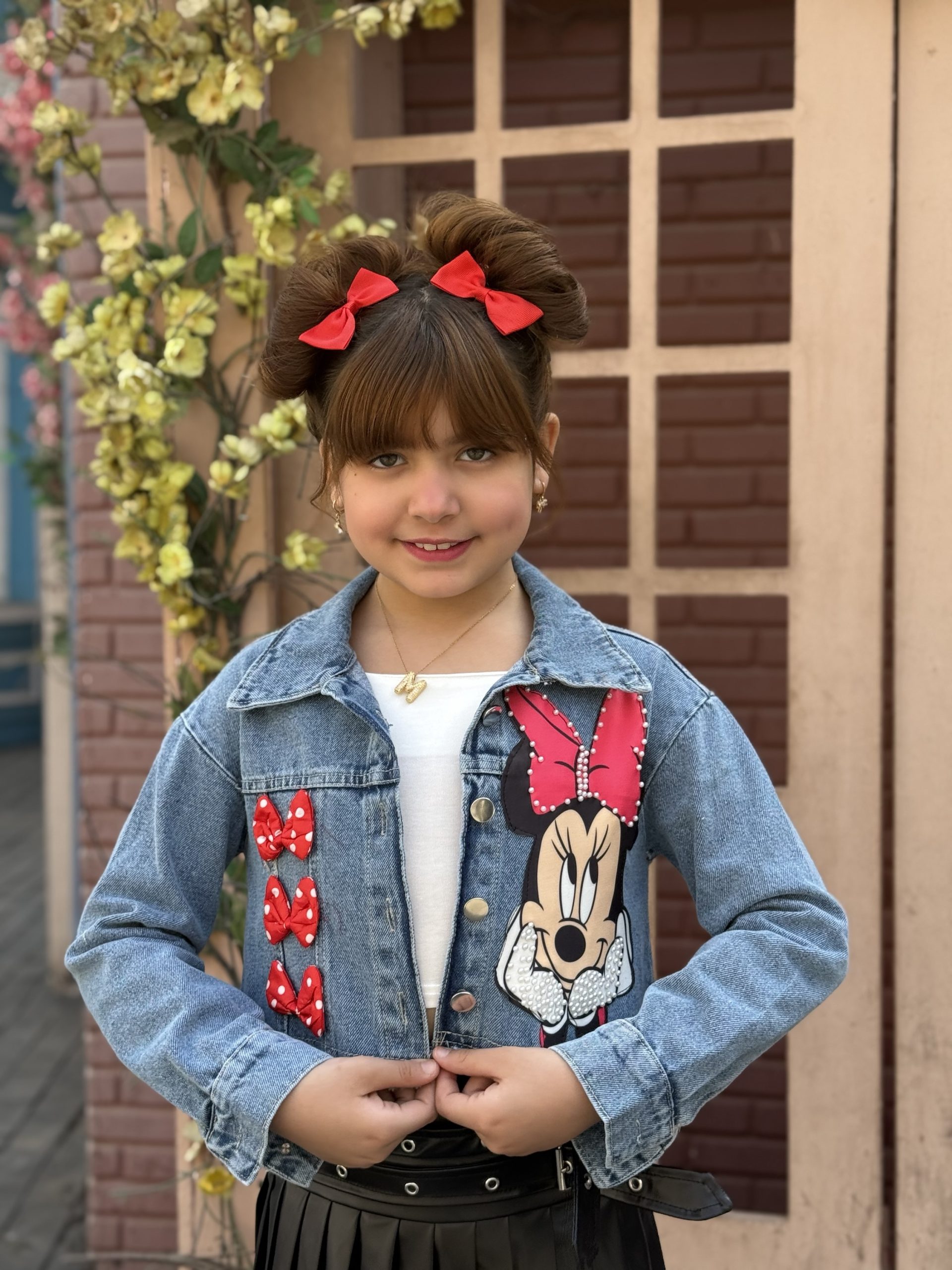 3D Bow & Minnie Mouse Print Jeans Jacket