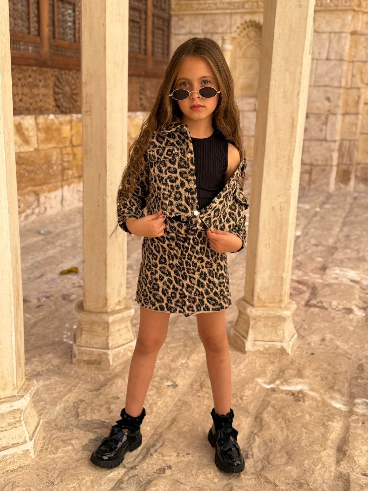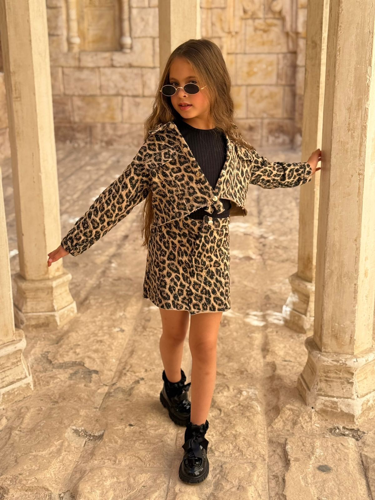 3pcs Leopard Print Cropped Jacket & Skirt Set With Top