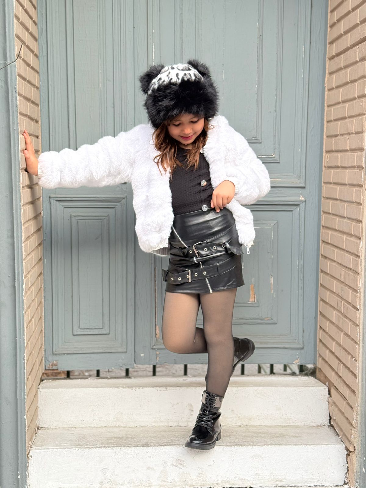 Black Leather Mini Skirt With Slanted Zipper And Belt Detail