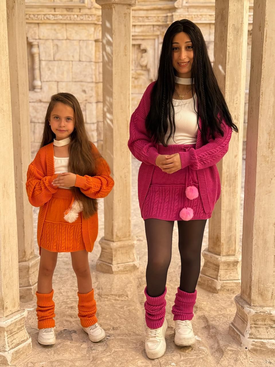 Cable Knit Cardigan & Skirt Set With Leg Warmers