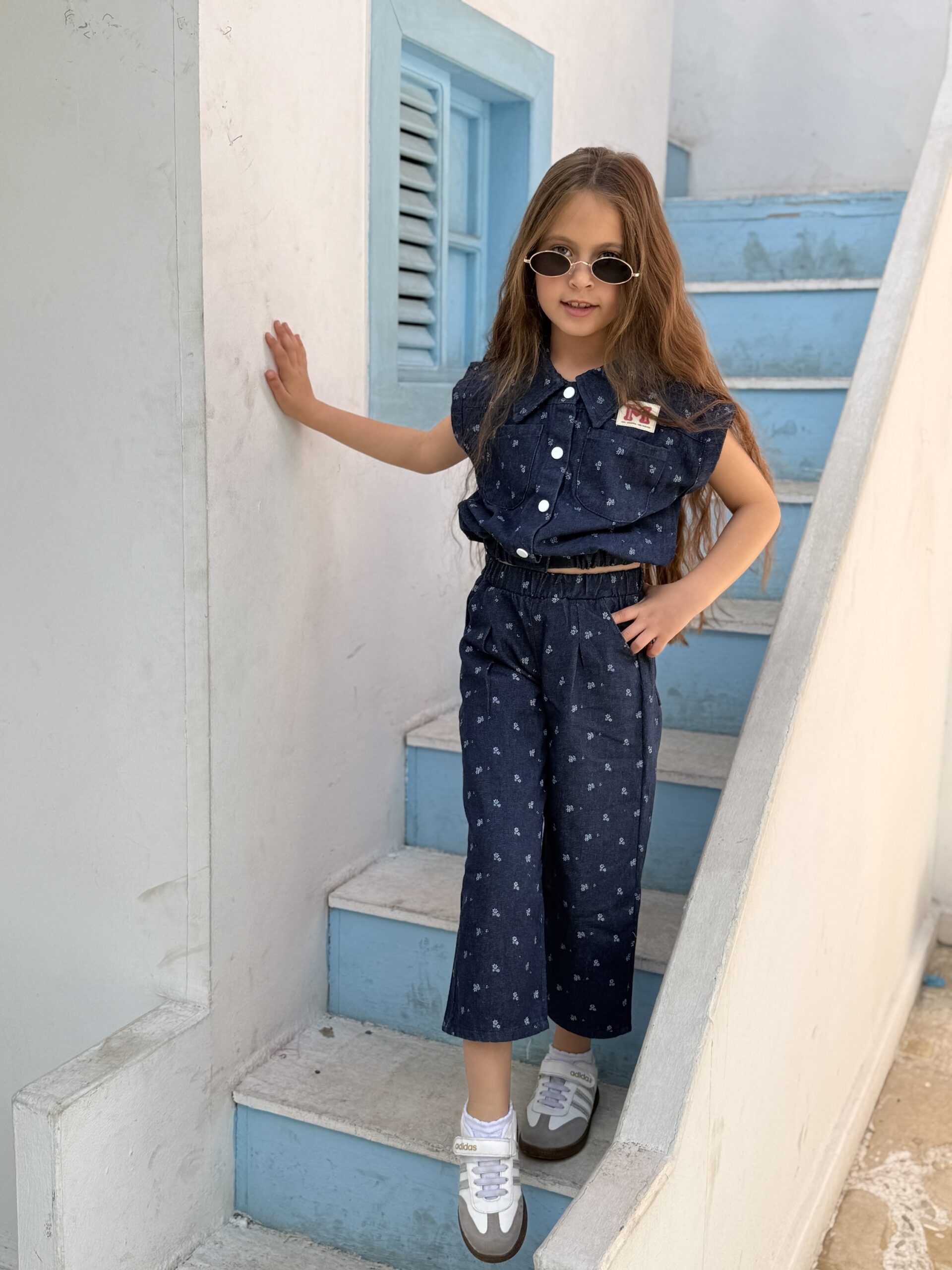 Denim 2pcs/Set Casual Collared Pocket Shirt And Straight Leg Pants