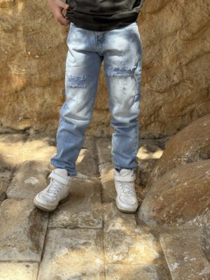 Fashionable Ripped Colorful Graffiti Print Baggy Blue Denim Jeans