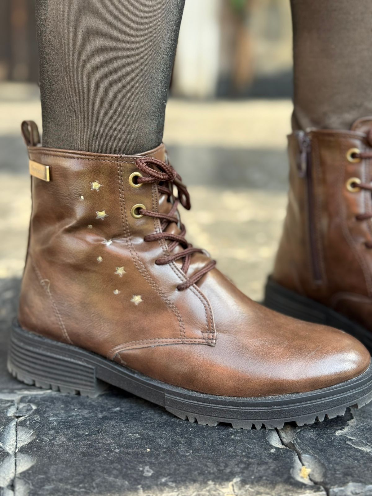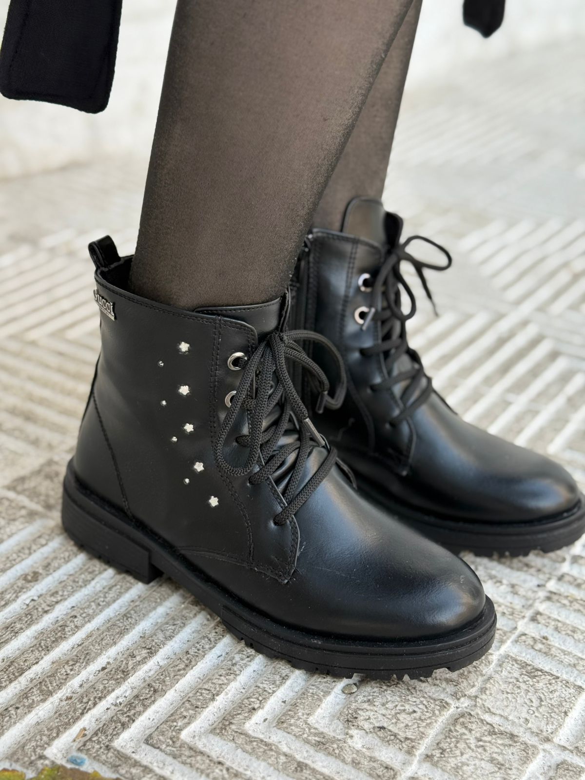 Lace-up Star Embellished Ankle Boots