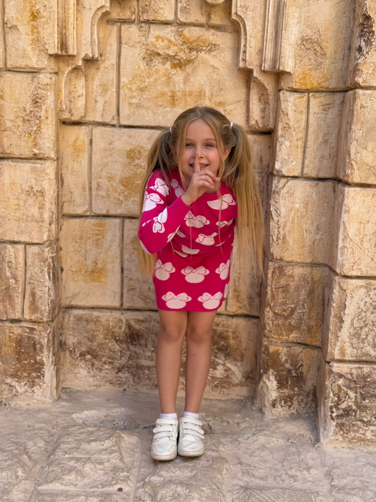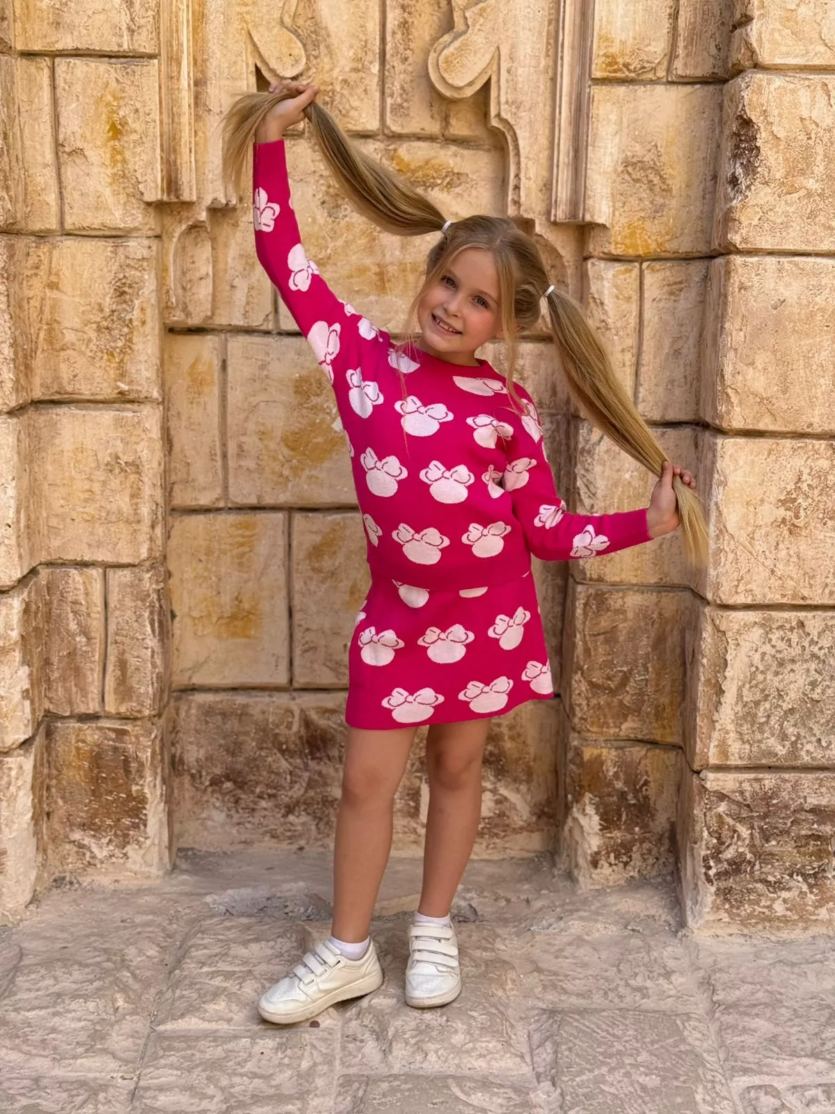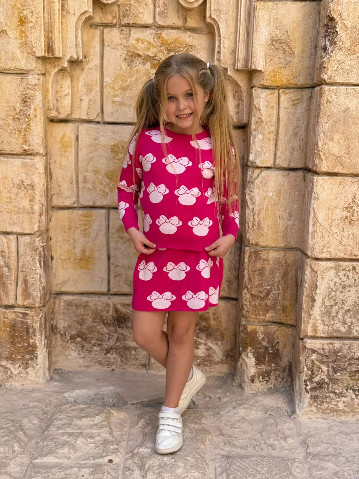 Minnie Mouse Print Knitted Pullover & Skirt Set
