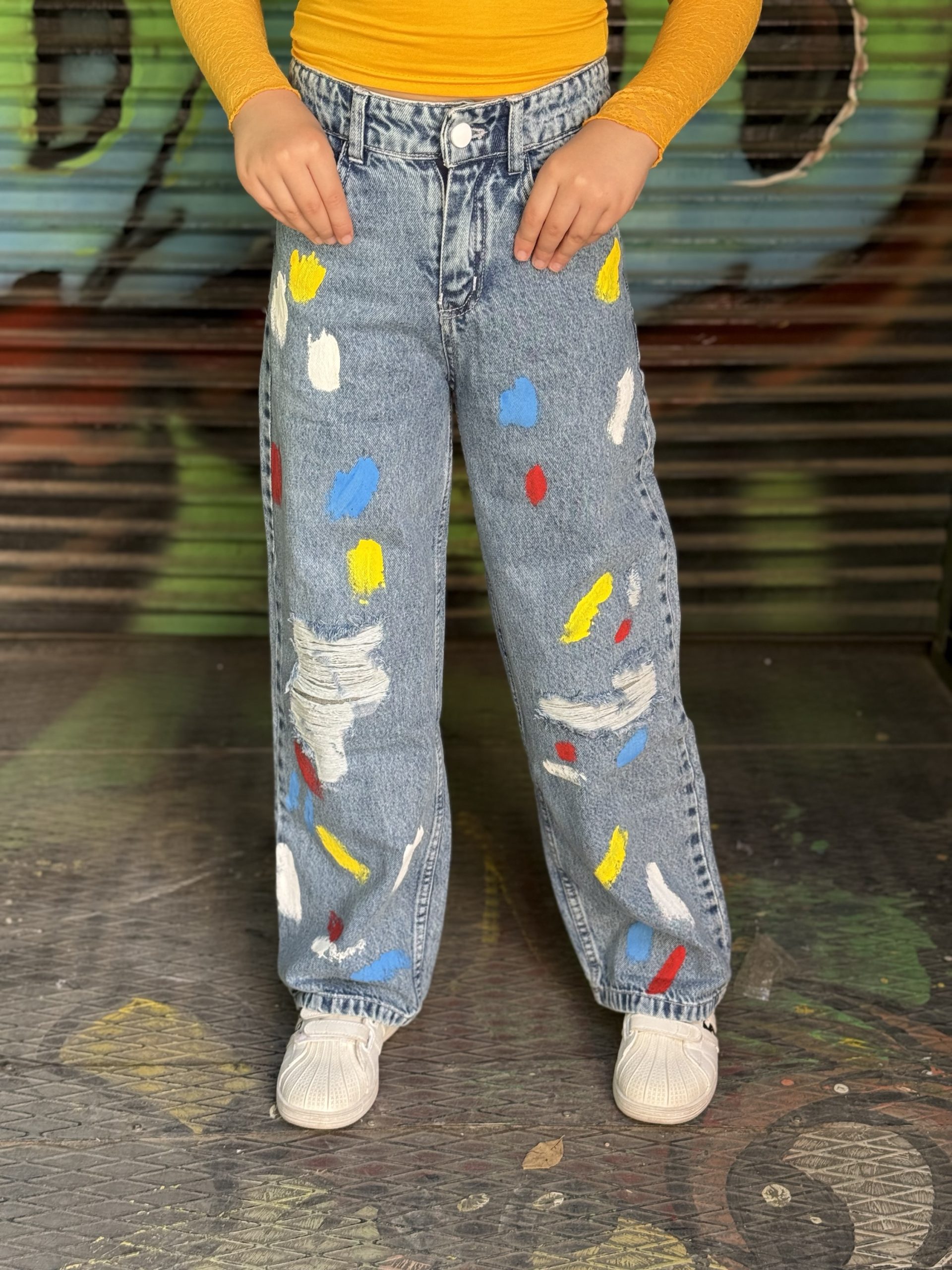 Paint Splatter Decor Ripped Straight Leg Jeans