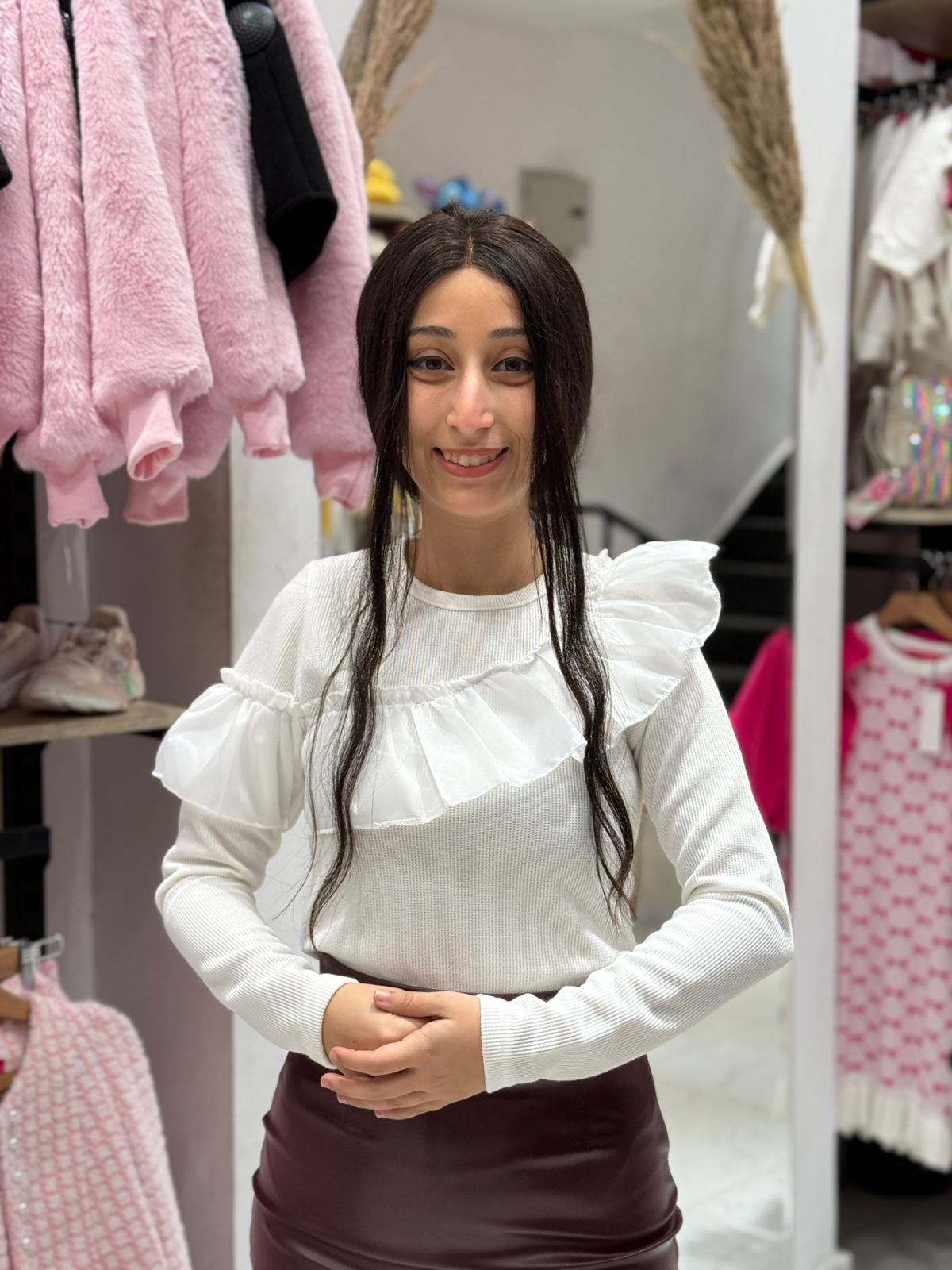 Ruffle Solid-Knit Long Sleeve Top