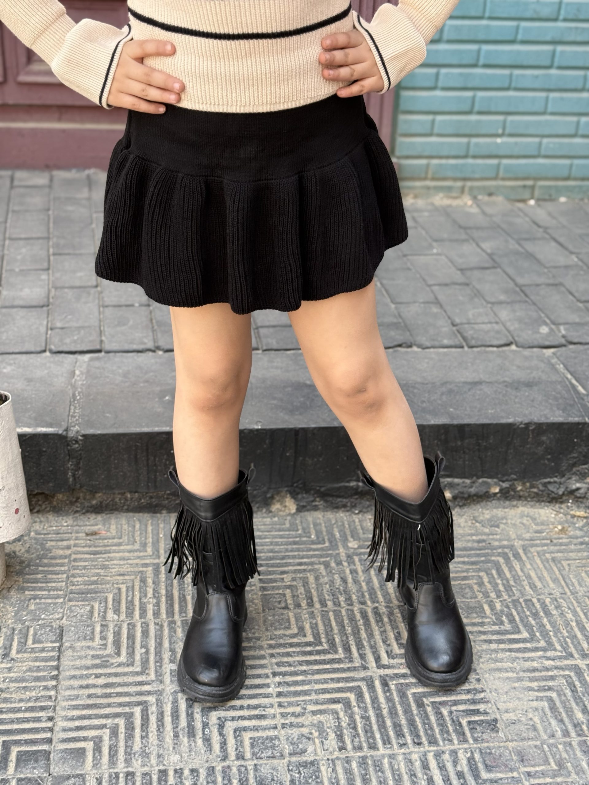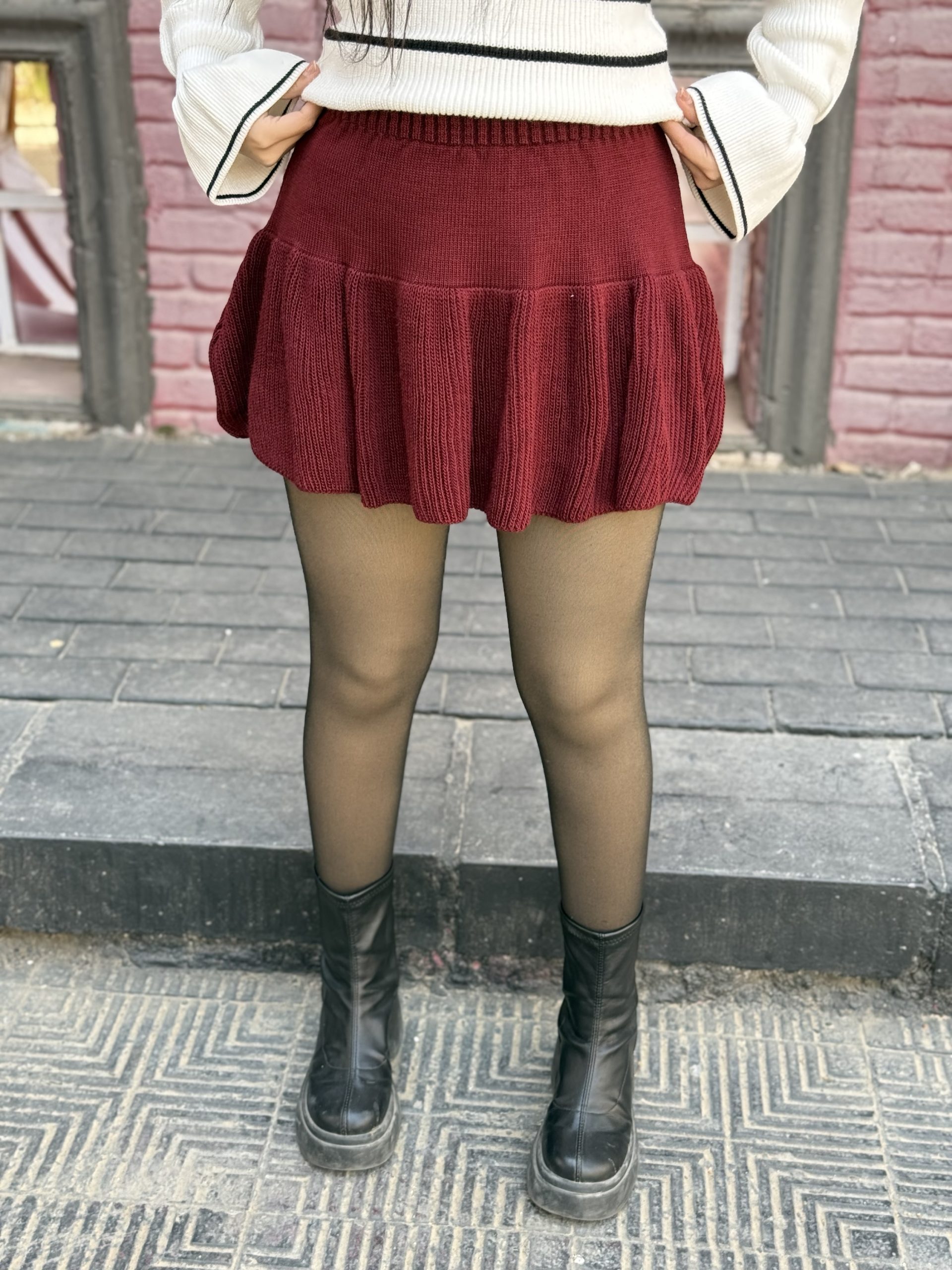 Solid Color Elastic Waist Casual Short Knit Skirt