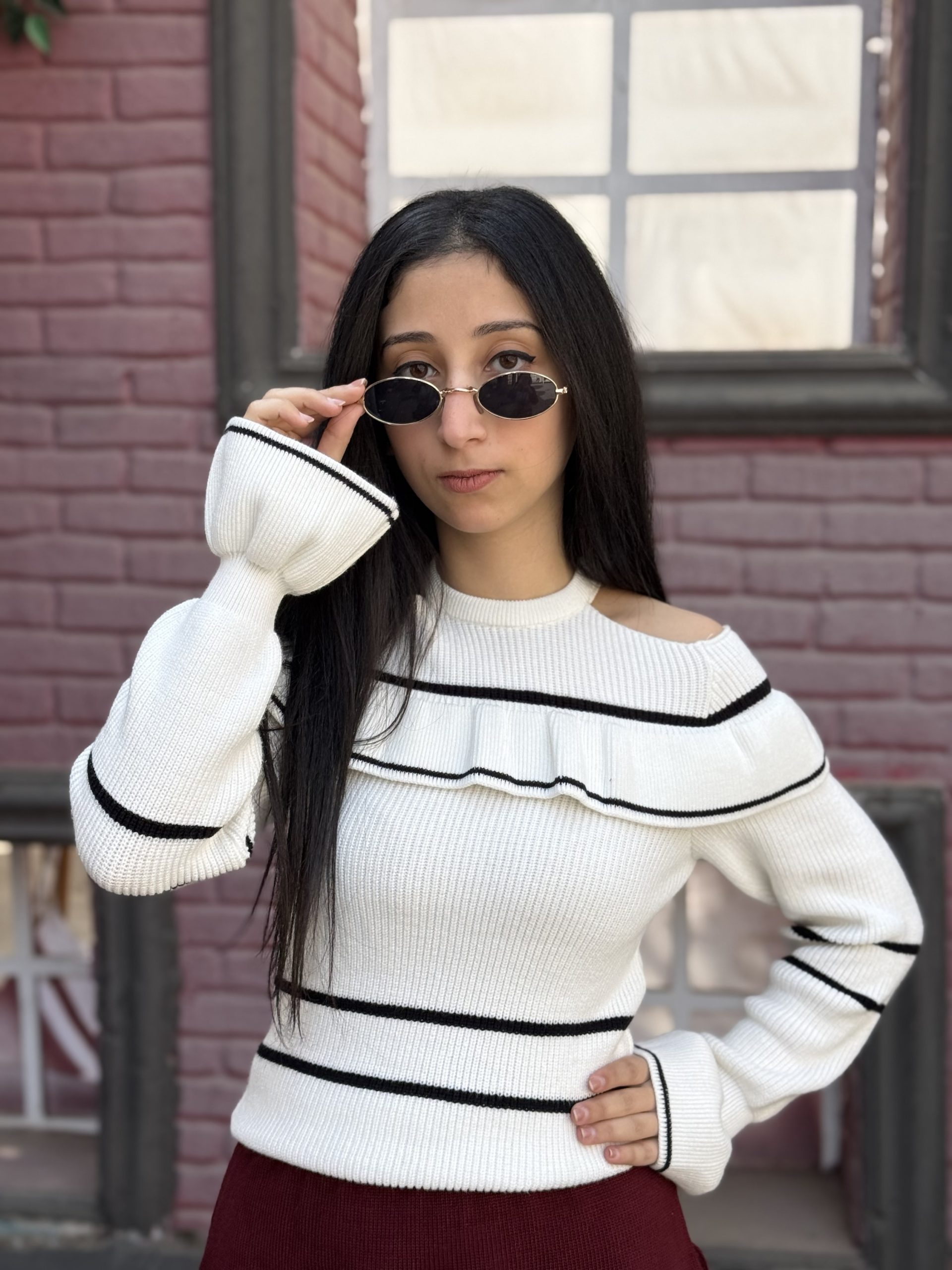 Striped Off Shoulder Long Sleeve Fitted Sweater