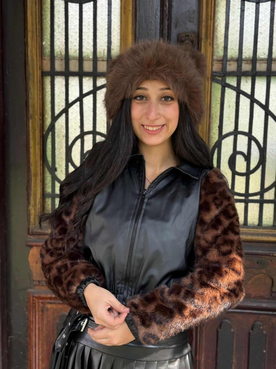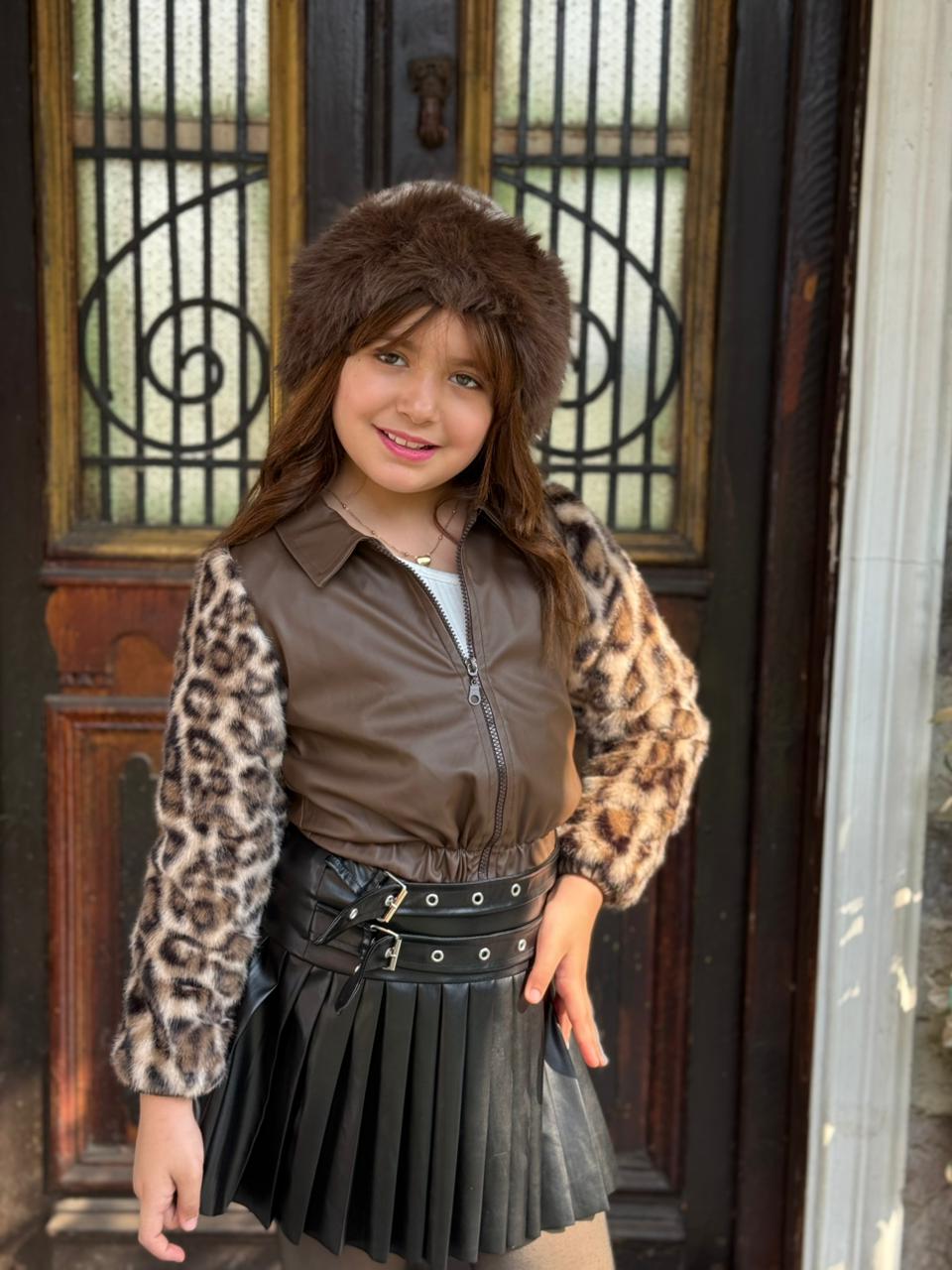 Tiger Print Faux Fur Sleeve Leather Jacket